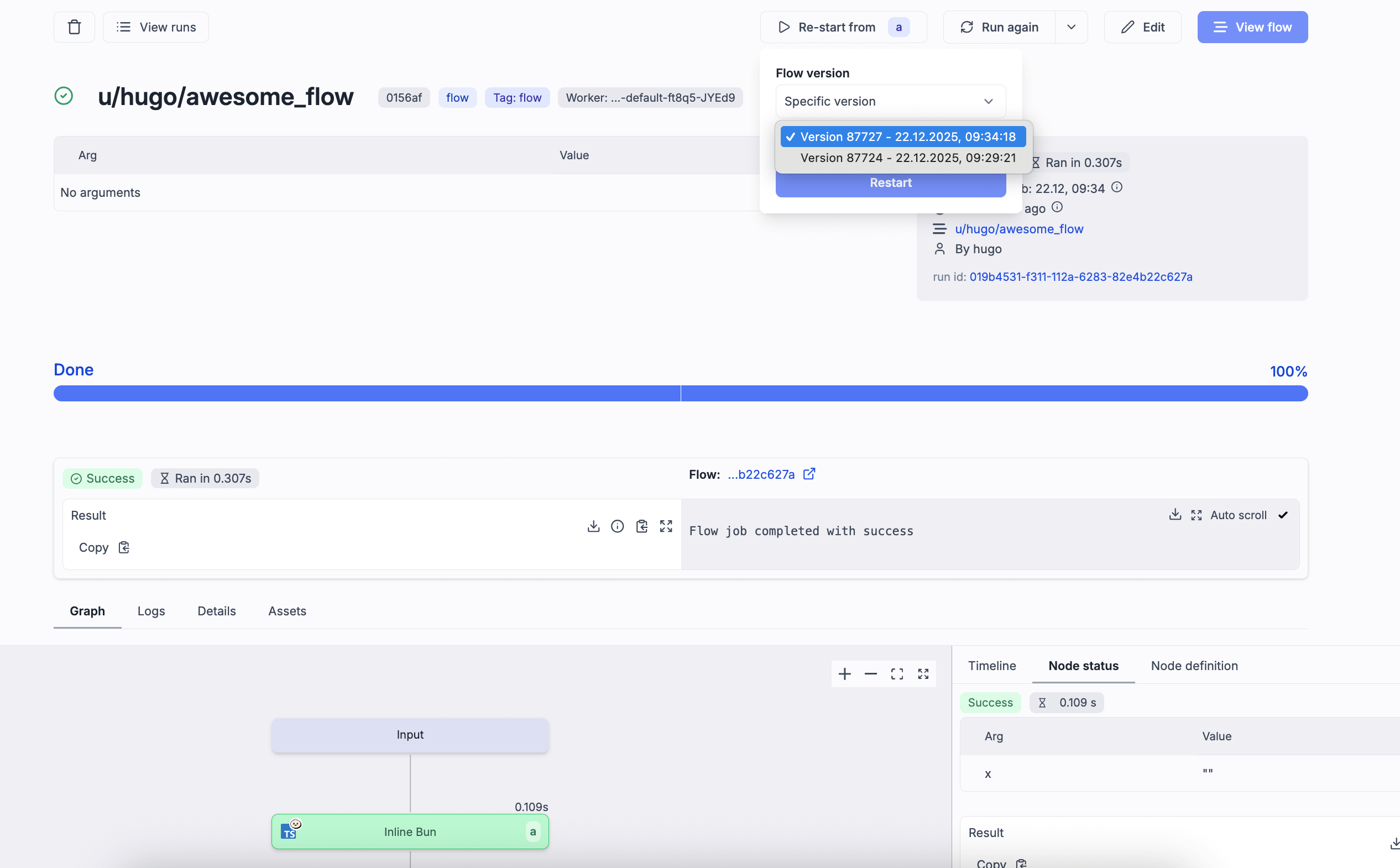 - Define workflows as code in a single script intuitive and lightweight syntax.